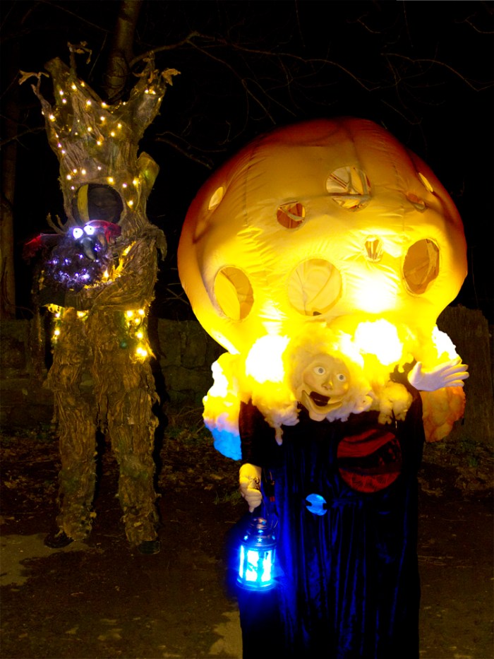 Commissioned by Stellar Projects for their 2016 event Nightfall with additional technological elements commissioned by Right Up Our Street for DN Festival of Light in 2018, Frolicked has crafted our own version of Nótt as a spectacular, lit, roaming puppet sculpture – a moon-bearing, rune-casting, fortune-teller, who enchants her audiences with the lightning in her hair, the starlight on her costume, and the gentle sway of the orb she dutifully carries.